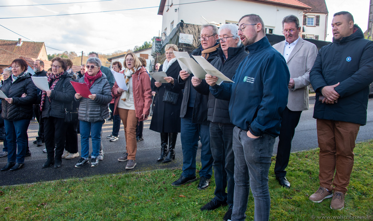 Après la sonnerie aux morts par une délégation de la fanfare des sapeurs-pompiers de Schweyen et la minute de silence, la chorale de Walschbronn-Waldhouse entonna la Marseillaise.