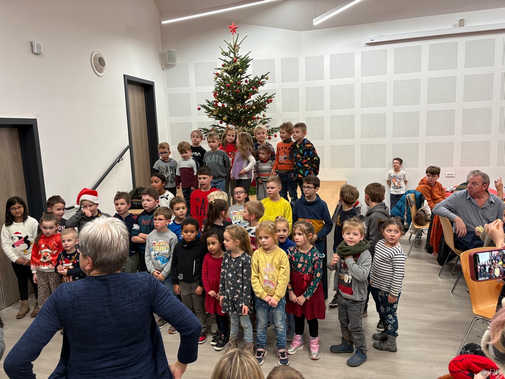 Puis les enfants, accompagnés des parents, ont bravé la pluie pour une balade aux lampions et contes dans les rues du village. Au retour dans la salle La Forge, chaque enfant s’est vu remettre un calendrier de l’Avent après avoir chanté quelques airs de Noël.